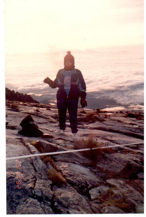 Cerita tentang Gunung Kinabalu... daku teringat lebih 20 tahun lalu... puncak Kinabalu telah berjaya kutawan! Gambar di atas tu, gambar Amie menggigil sejuk di puncak gunung! Tu .. pakai baju 7 lapis tau!