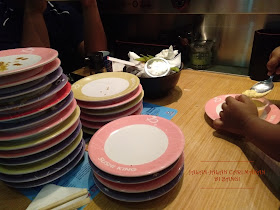 Nampaknya anak-anak berjaya menghabiskan 25 piring sushi!