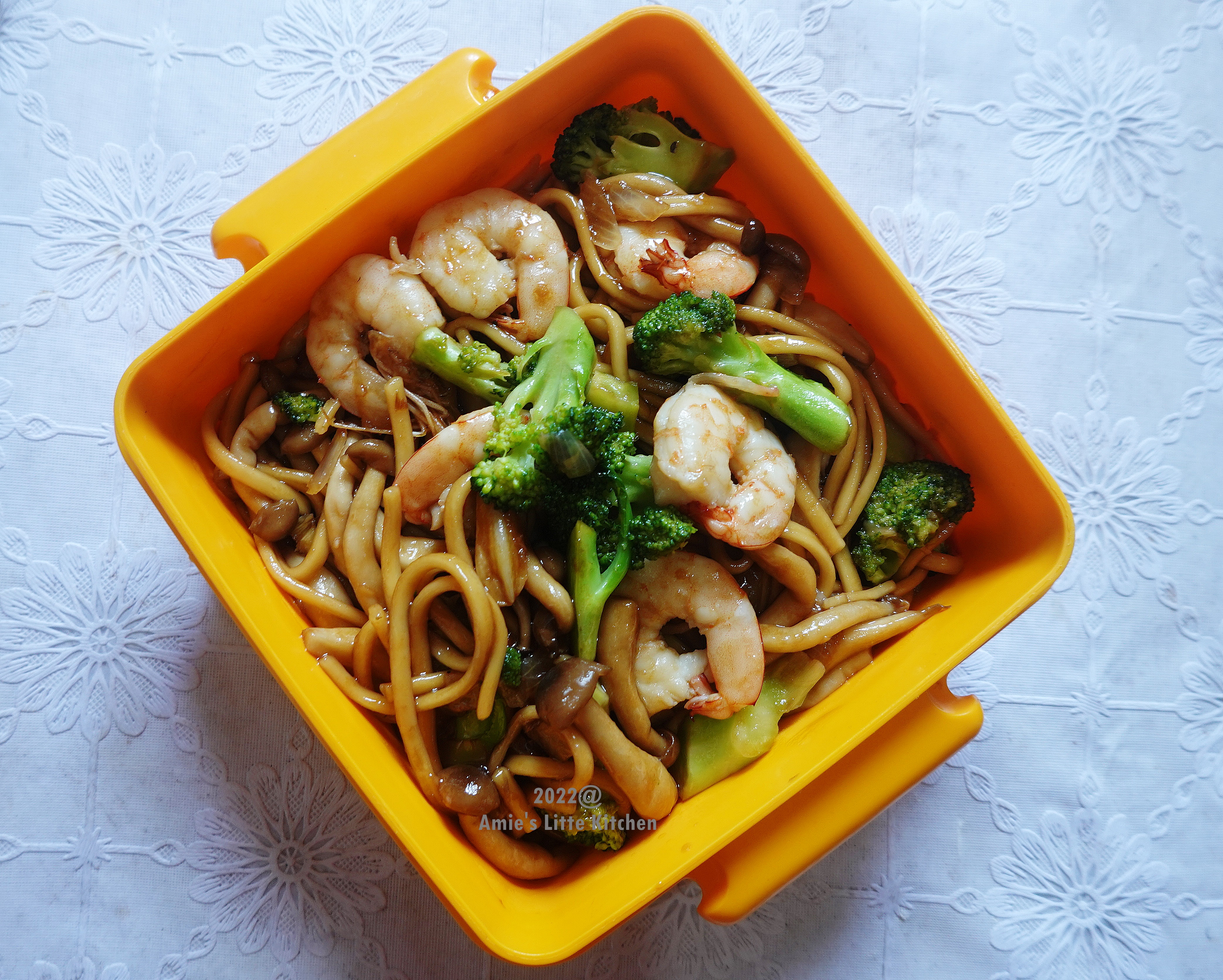 Baiklah, kita teruskan paparan idea bekal sarapan pagi dari dapur Amie. Kali ini Amie bawa bekal mi tarik labu goreng dengan udang. Cukuplah bekalan karbohidrat dari mi tarik labu dan sumber protein dari udang. Saladnya pula Amie gabungkan coral green dengan aprikot dan jagung manis yang direbus, sementara buah-buahannya Amie susun hirisan betik, buah kiwi dan rockmelon.