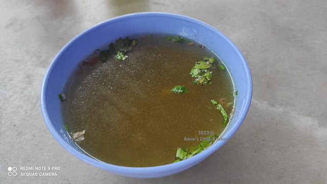 Semangkuk kecil sup kosong turut dihidangkan. Ada tiga mangkuk sup kesemuanya, dan ketiga-tiganya Firdaus hirup hingga habis! Sedap, katanya.