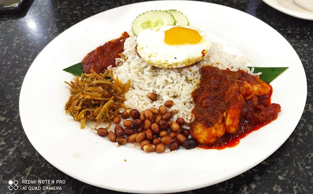 | Nasi Lemak Sambal Udang Telur Goyang. |