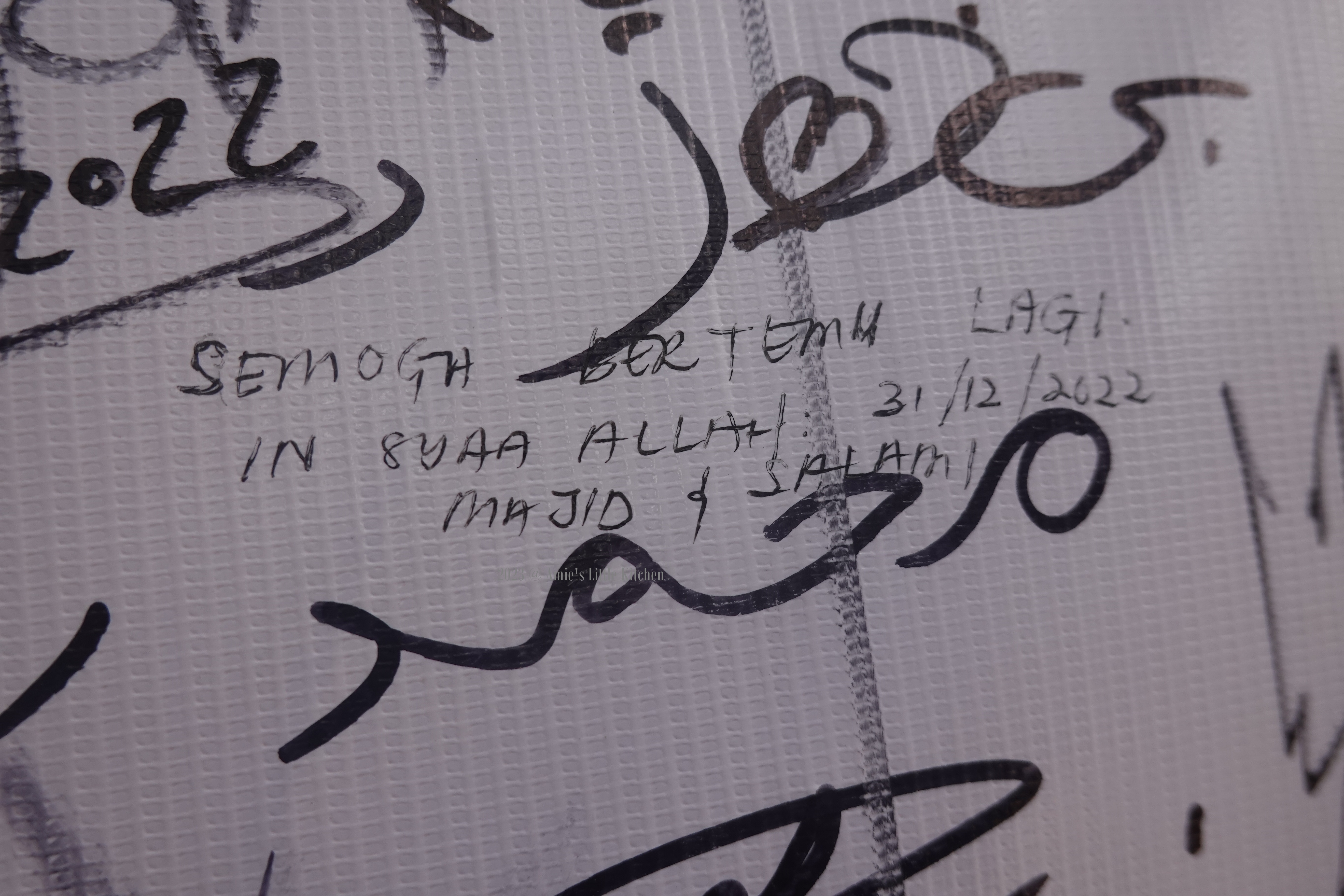 Encik Suami minta kita tulis sesuatu di kain rentang ini sebagai kenangan.