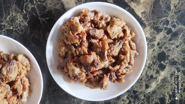 Kita pilih cendawan yang masih elok. Fikir-fikir, eloklah digoreng buat kudap-kudapan. Kita tambahkan tepung, hirisan bawang besar, kisarkan bawang putih bersama ikan bilis, pecahkan sebiji telur dan bubuh garam serta perasa. Kita tuangkan sedikit demi sedikit air sekadar untuk bagi melekat tepung pada cendawan. Kemudian goreng hingga warna keemasan. Selain Encik Suami, Firdaus pun ikut makan sama!