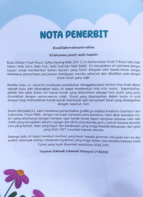 Tahun ini jarang-jarang Amie kongsikan hasil penulisan di sini. Sebelum tiba penutup tahun 2024, Amie paparkan sebuah buku Iktibar Kisah Rasul - Sofea Sayang Nabi. Seramai 10 orang penulis bergabung untuk menghasilkan karya kreatif yang menggabungkan unsur fiksyen dan non-fiksyen untuk bacaan kanak-kanak dan remaja menengah rendah.